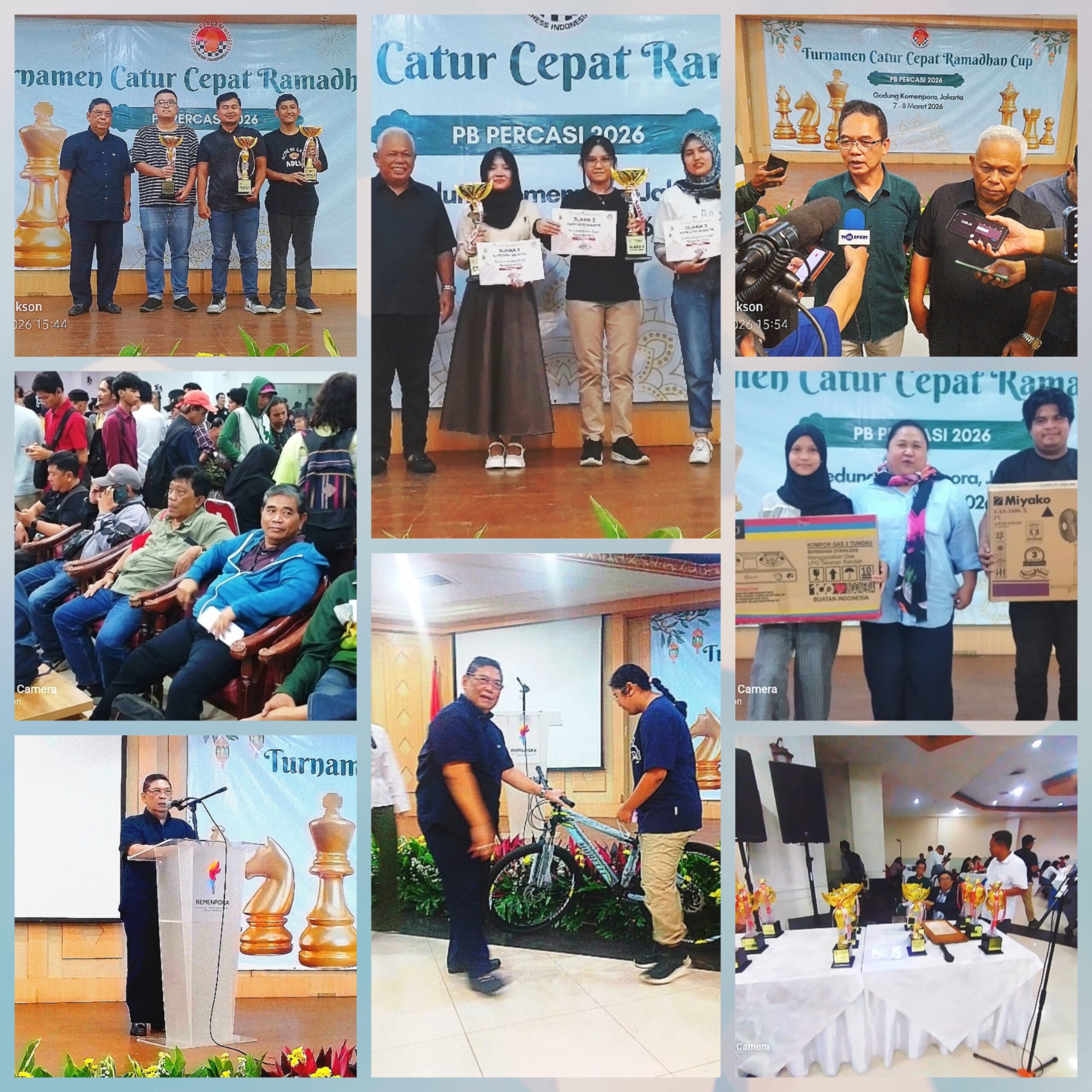 Saat penutupan Turnamen Catur Ramadhan Cup 2026 ke-20 ini, PB Percasi membagi-bagikan door prize kepada para peserta dan panitia penyelenggara berupa magic com, kipas angin, mesin cuci, hingga sepeda.